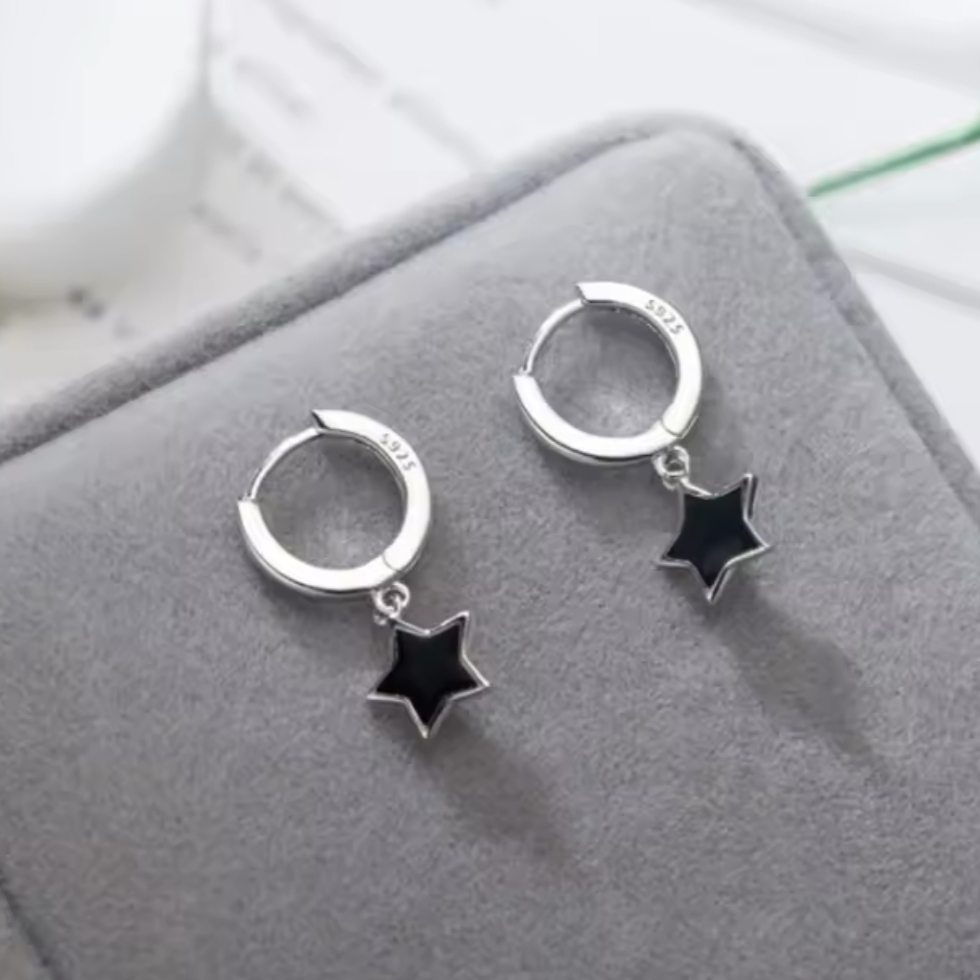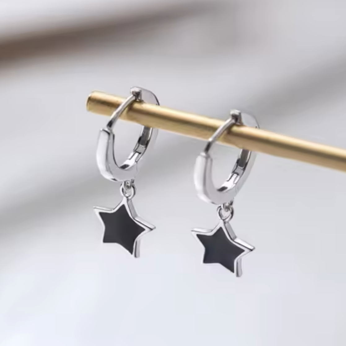 925 sterling silver huggie with black enamel star charms