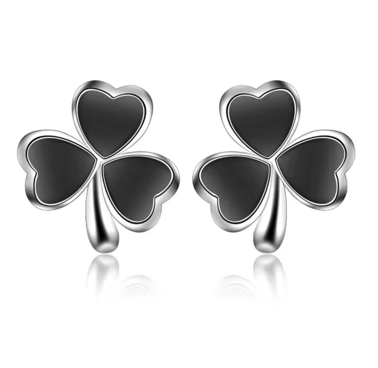 925 sterling silver black clover stud earrings