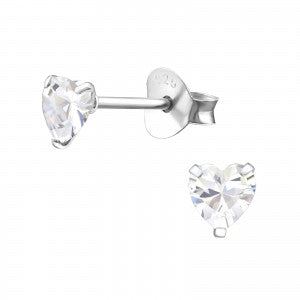 925 sterling silver clear crystal heart shaped pair of studs with sterling silver butterfly backs