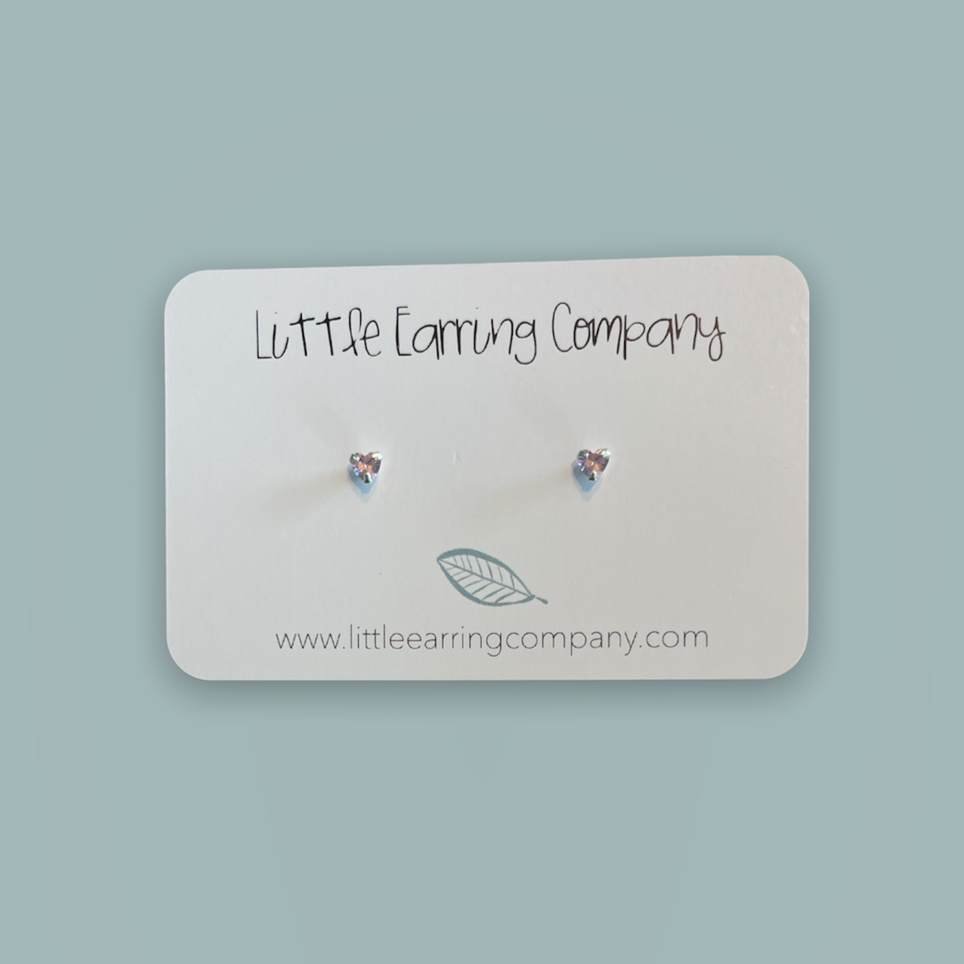925 sterling silver pink crystal heart shaped pair of studs with sterling silver butterfly backs