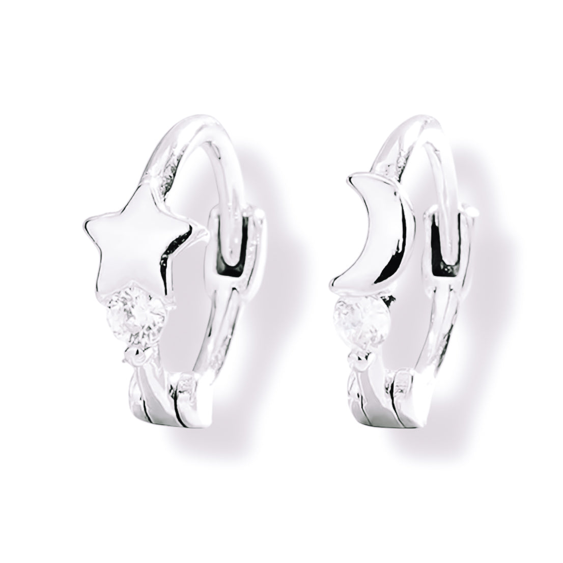 925 sterling silver pair of huggie earrings with one moon and one star that are a lovely accessory that go with anything