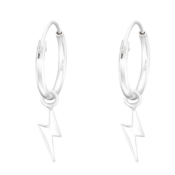 925 sterling silver pair of huggies with lightning bolt charms