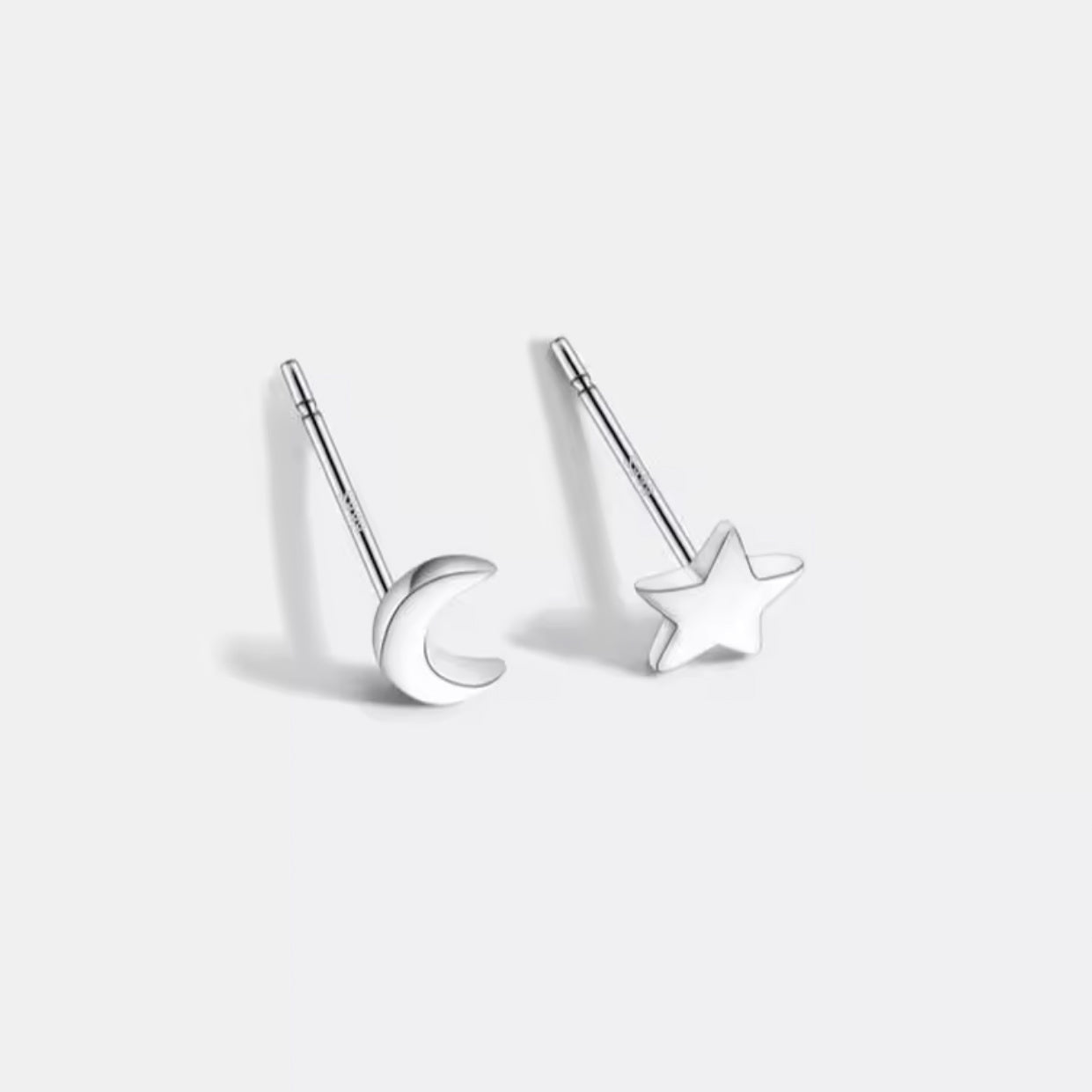 This super cute pair of earrings are in the shape of a moon and a star for a quirky mismatch