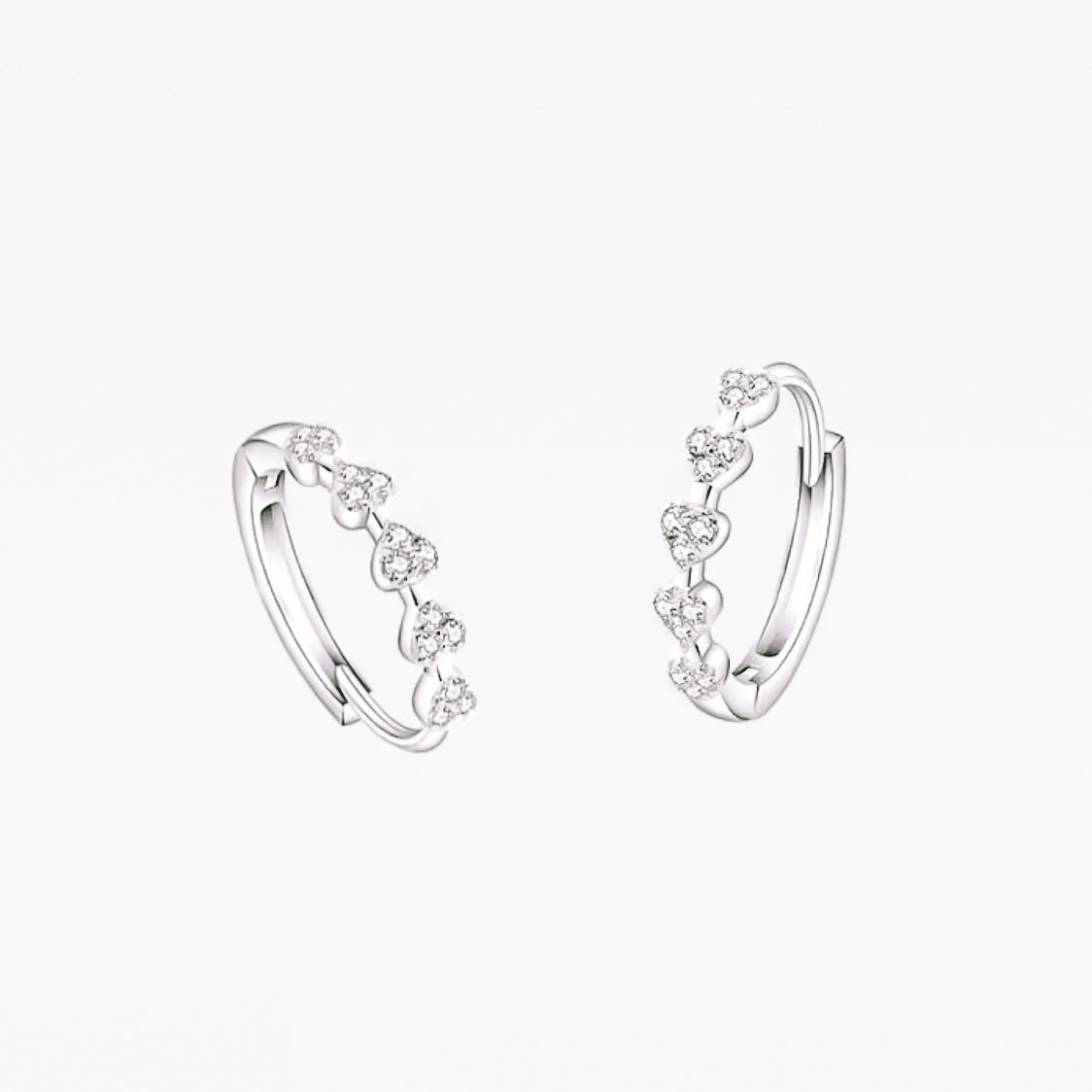 Silver pair of huggies decorated with mini crystal hearts made with 925 sterling silver