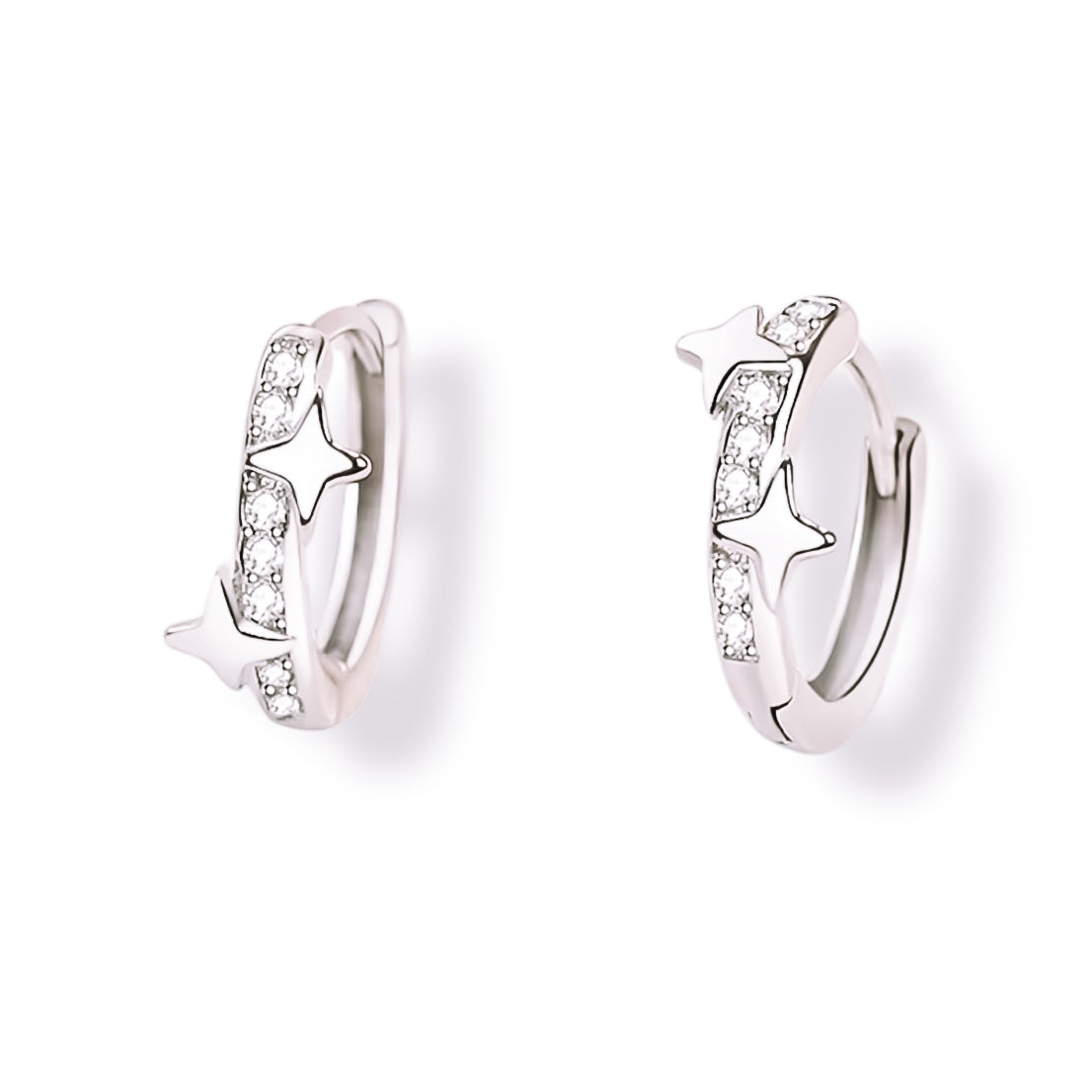 925 sterling silver pair of huggie earrings with crystal & star details that are a lovely accessory that go with anything