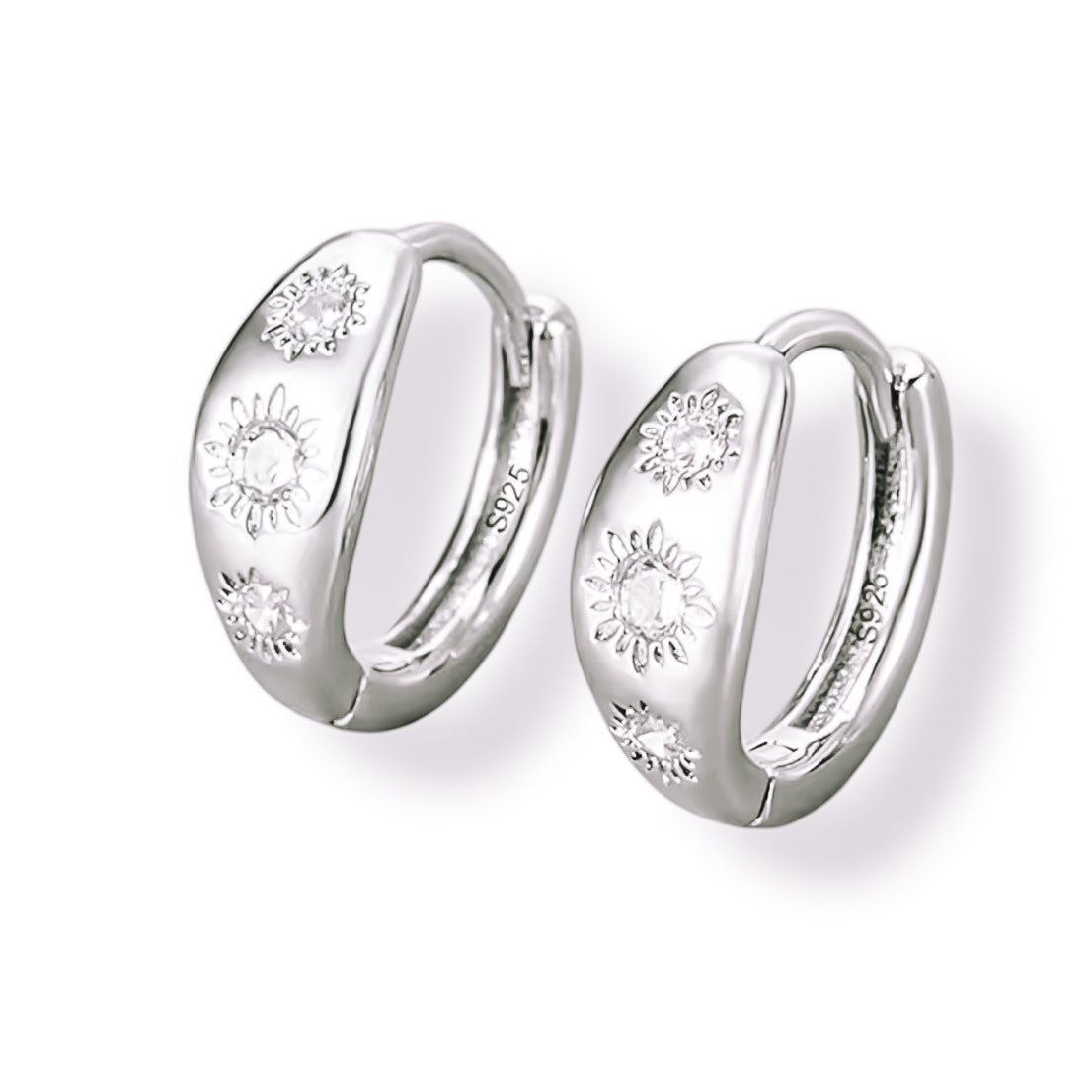 925 sterling silver pair of chunky huggie earrings with crystal details that are a lovely accessory that go with anything